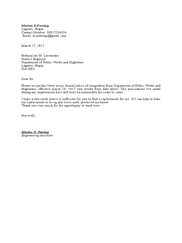 2 week notice letter engineer.